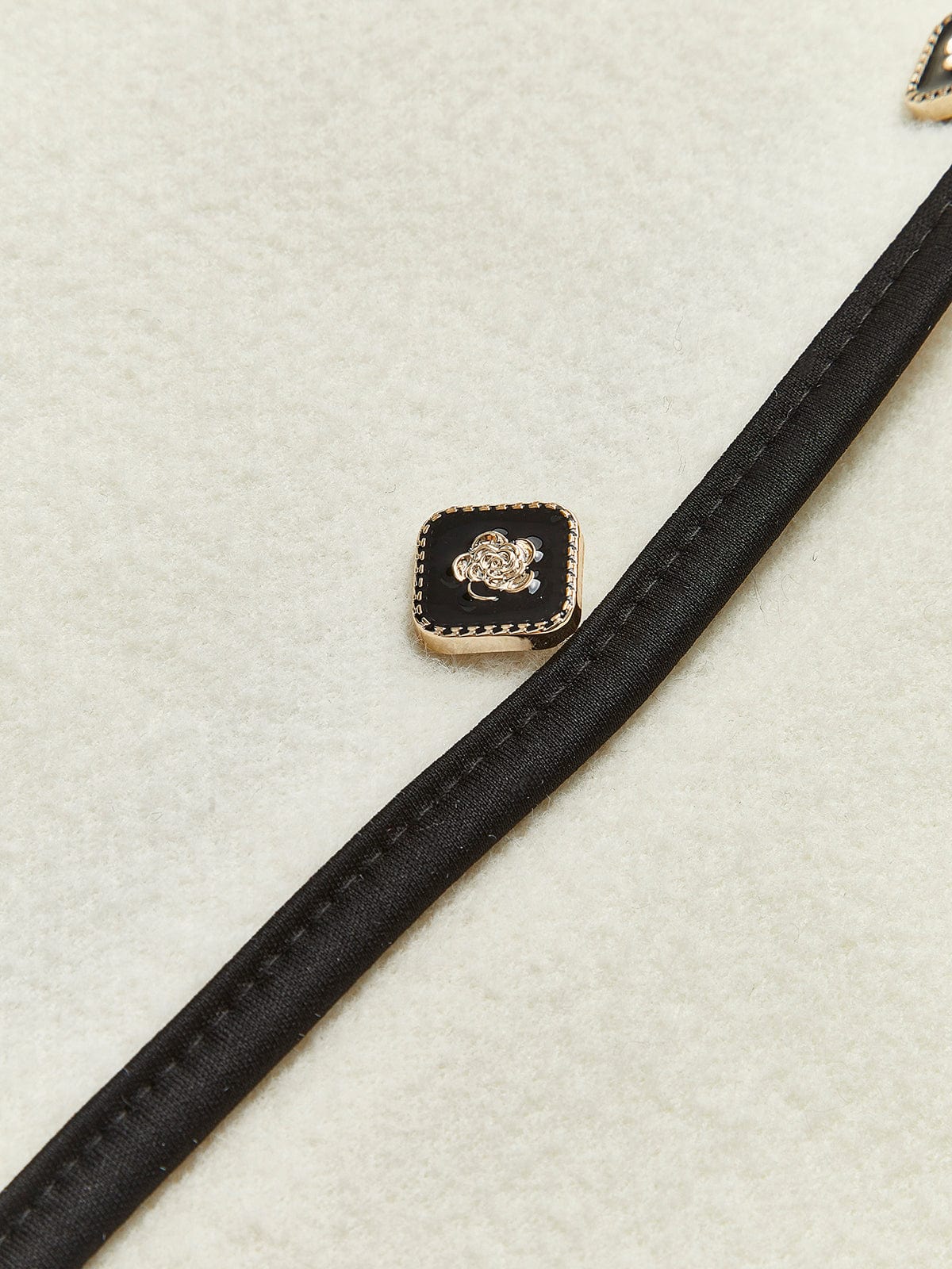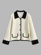 Elegant Contrast Trim Bouclé Jacket with Gold Button Detail