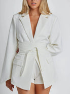 Tailored Belted Blazer with Wide Lapels and Sleek Silhouette