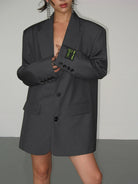 Valenor Women’s Oversized Blazer – Charcoal Grey Tailored Statement Jacket