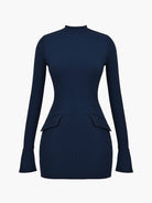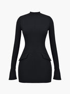Nyxelle Long-Sleeve Bodycon Mini Dress – High-Neck Sculpted Silhouette