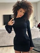 Crafted to hug the body comfortably, the Nyxelle Mini Dress enhances natural curves while offering ease of movement. The long sleeves balance the mini length beautifully, making it ideal for evenings out, city nights, or elevated casual occasions. A true wardrobe essential for those who appreciate simplicity with impact.