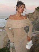 Effortlessly refined, the Elowyn Ribbed Bouclé Off-Shoulder Dress is designed to flatter from every angle. Crafted from textured bouclé fabric with a naturally ribbed finish, this dress offers gentle stretch that contours the body while remaining comfortable and elegant. The silhouette is enhanced by a softly draped off-the-shoulder neckline, creating a sophisticated focal point that highlights the shoulders and collarbone.
