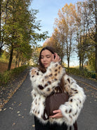 Experience the perfect blend of elegance and comfort with the Snow Leopard Faux Fur coat. Designed to mimic the stunning snow leopard pattern, this coat makes a chic statement for any occasion. Its plush texture and refined design ensure warmth while radiating timeless glamour.
