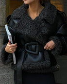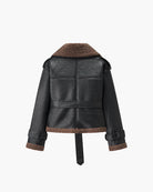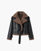 Caléa Belted Faux Fur Trim Leather Jacket – Chic Short Winter Coat