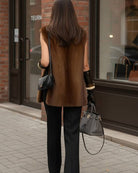 With its loose fit and clean lines, the Eliora Vest transitions seamlessly from everyday wear to more styled outings. Whether layered over knitwear, dresses, or long-sleeve tops, it brings cozy elegance and versatility to your seasonal wardrobe.