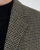 Elegant check pattern with refined contrast button details.