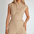 Structured High-Waisted Sleeveless Jumpsuit in Beige