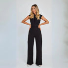 With its shoulder-enhancing cut and elongating wide-leg silhouette, this jumpsuit transitions seamlessly from day to night. Whether worn to the office, a chic brunch, or an evening event, it promises effortless style and refinement.