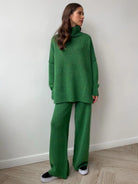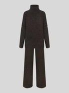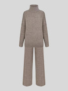 Sorelle Women’s Knitted Lounge Set – Beige Oversized Turtleneck & Wide-Leg Pants