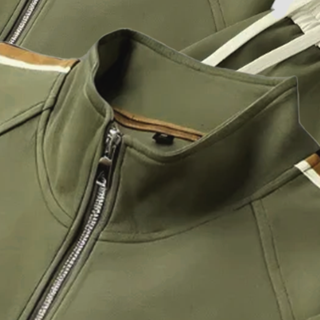 The zip-up jacket features sleek contrast stripes along the sleeves, adding a dynamic, athletic edge. Coordinating joggers with matching leg stripes complete the cohesive design, while ribbed trims lend a refined finish. Functional side pockets offer everyday convenience without compromising on style.