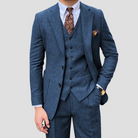 Men's Slim Suit Blended Fabric Three-Piece with Coordinated Vest Blue