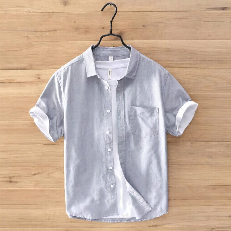 Leonard Men’s Linen Short Sleeve Button Shirt with Classic Collar Gray