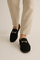 Benjamin Suede Loafers with Gold Buckle – Elegant Slip-On Shoes for Men Black