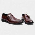 Elliot Men’s Leather Monk Strap Shoes – Classic Single Buckle Dress Footwear Black