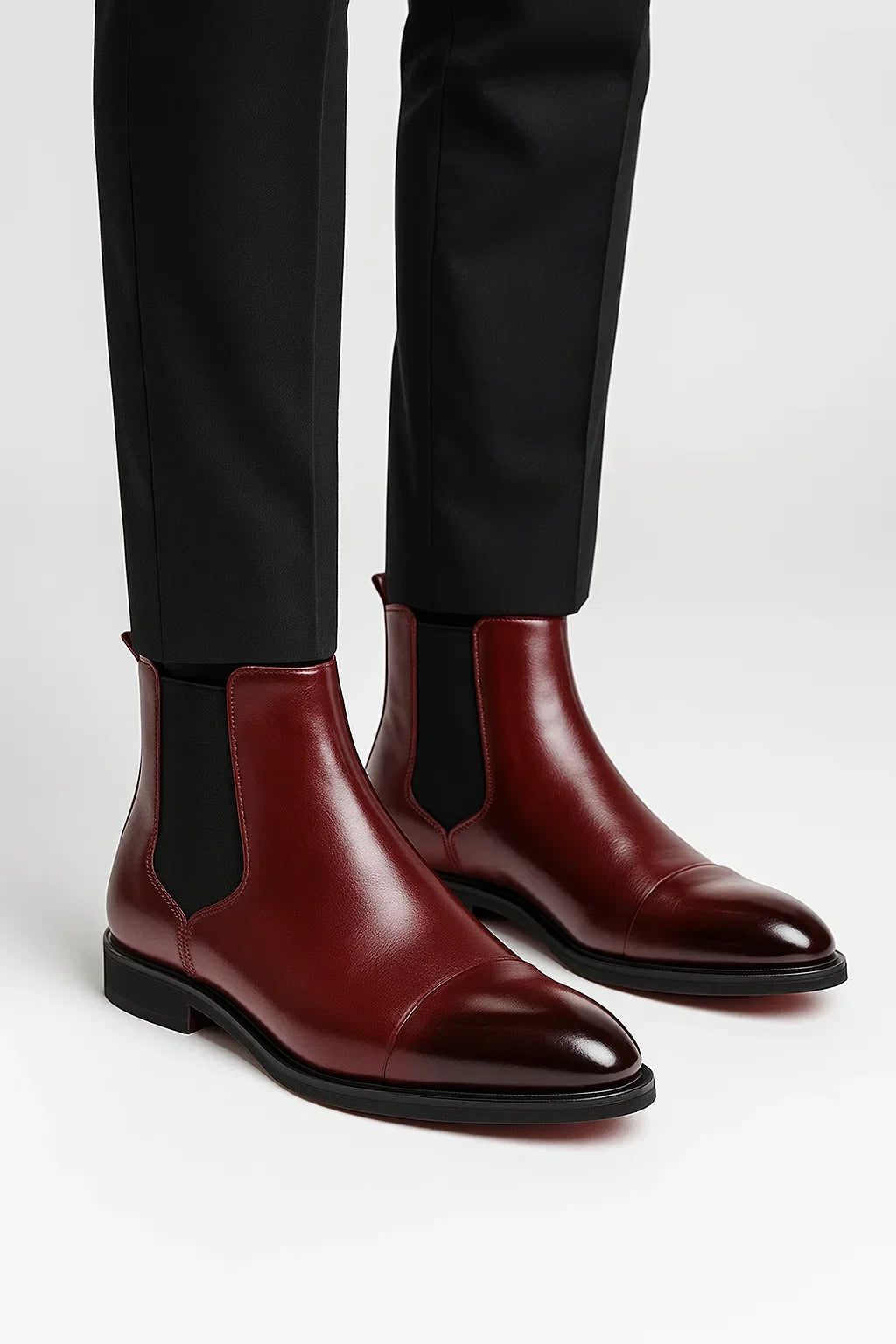 Men's Classic Leather Chelsea Boots – Timeless Style & Everyday Comfort Maroon Red