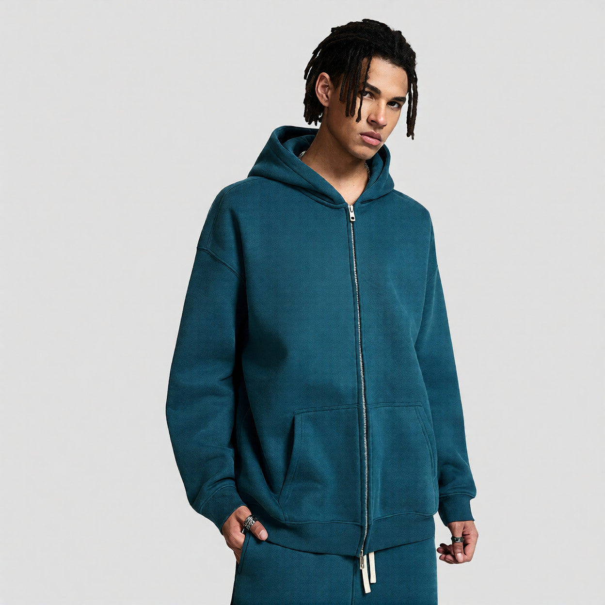 A versatile zip-up hoodie that blends warmth, comfort, and clean design for confident daily styling.