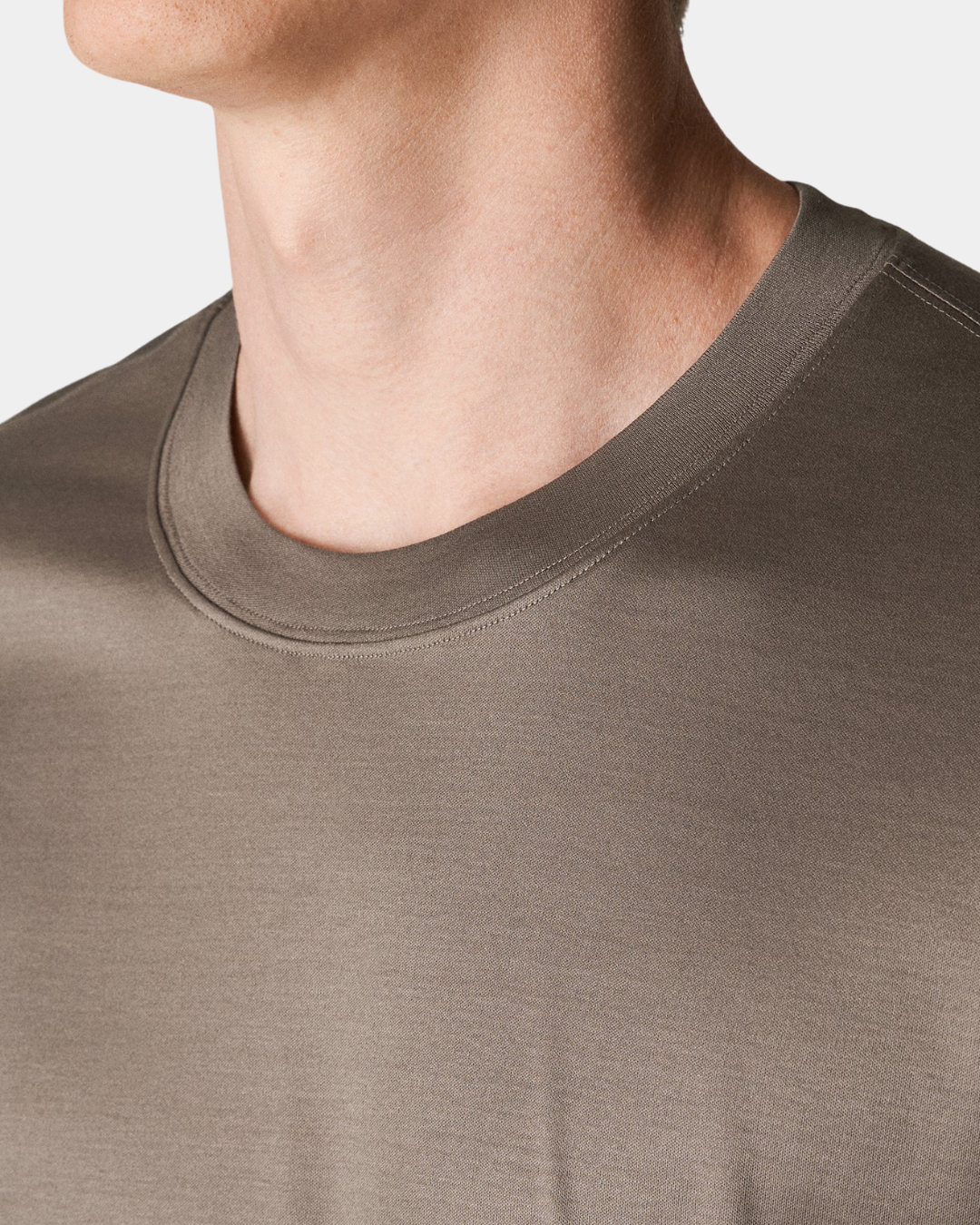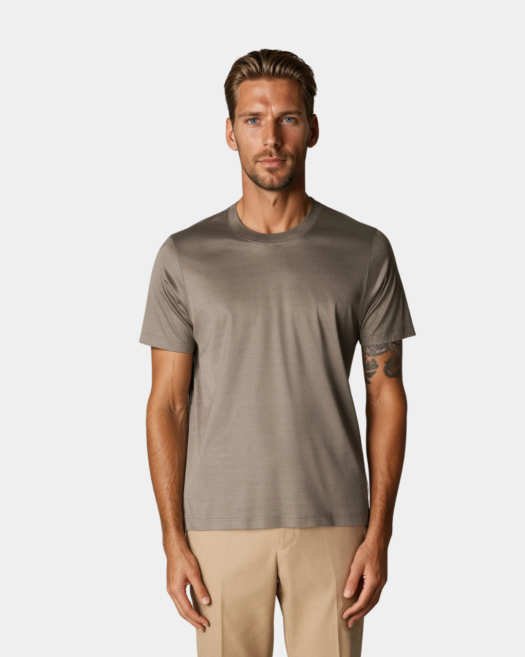 Whether worn under a jacket or on its own, this Mocha Supima T-shirt is your go-to for premium comfort and everyday sophistication.