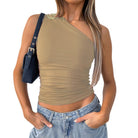 Turn heads with this stunning one-shoulder ruched crop top in a rich burgundy hue. Designed to accentuate your silhouette, the gathered side detailing adds texture and elegance to this bold, minimalist piece. The asymmetric neckline brings a modern, edgy touch while still feeling timeless and flattering.