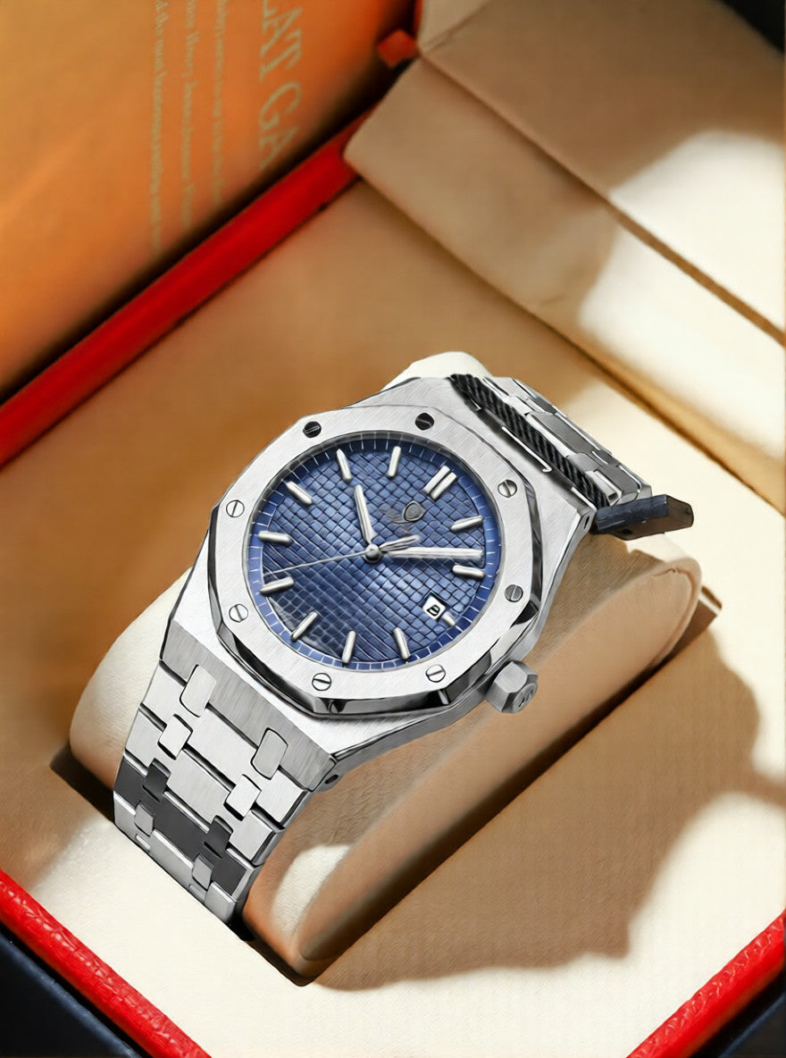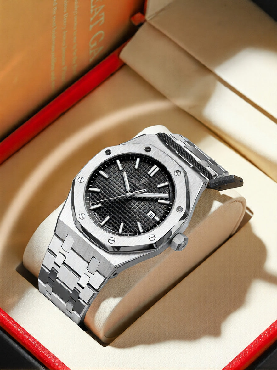 Crafted for men who appreciate refined design and dependable performance, this stainless steel bracelet watch delivers a confident balance of modern structure and timeless appeal. The textured dial adds visual depth while maintaining clear legibility, making it suitable for both everyday routines and more polished occasions. Designed with a solid metal case and a smoothly integrated bracelet, it sits comfortably on the wrist and complements a wide range of outfits. The precise quartz movement ensures consistent timekeeping, while the built-in date window adds practical functionality. Designed for the United Kingdom lifestyle, this watch transitions effortlessly from workdays to evenings with understated confidence.