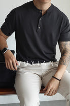 This men’s Henley T-shirt is designed for everyday wear with a refined, modern character. Crafted from soft cotton jersey, it delivers breathable comfort while maintaining a clean silhouette throughout the day. The classic three-button placket and rib-knit collar add subtle structure, giving the piece a polished look that works effortlessly with denim or layered under outerwear. Cut slim through the torso, this Henley T-shirt offers a confident profile that suits casual settings as well as smart-casual styling. Built with reinforced stitching at the placket, it is made to accompany your daily routine with ease and reliability.