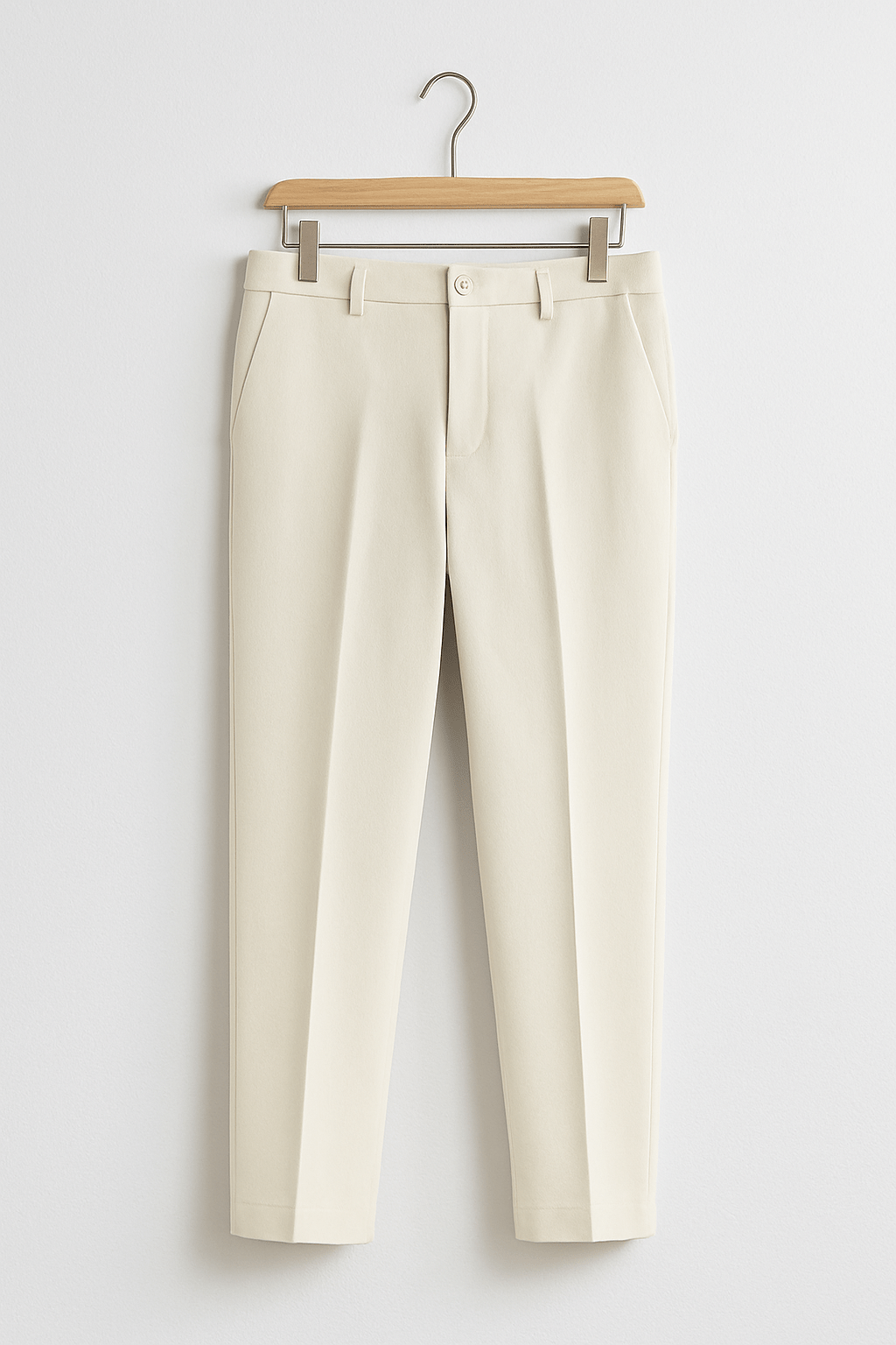 Sharp front pleat adds structured elegance