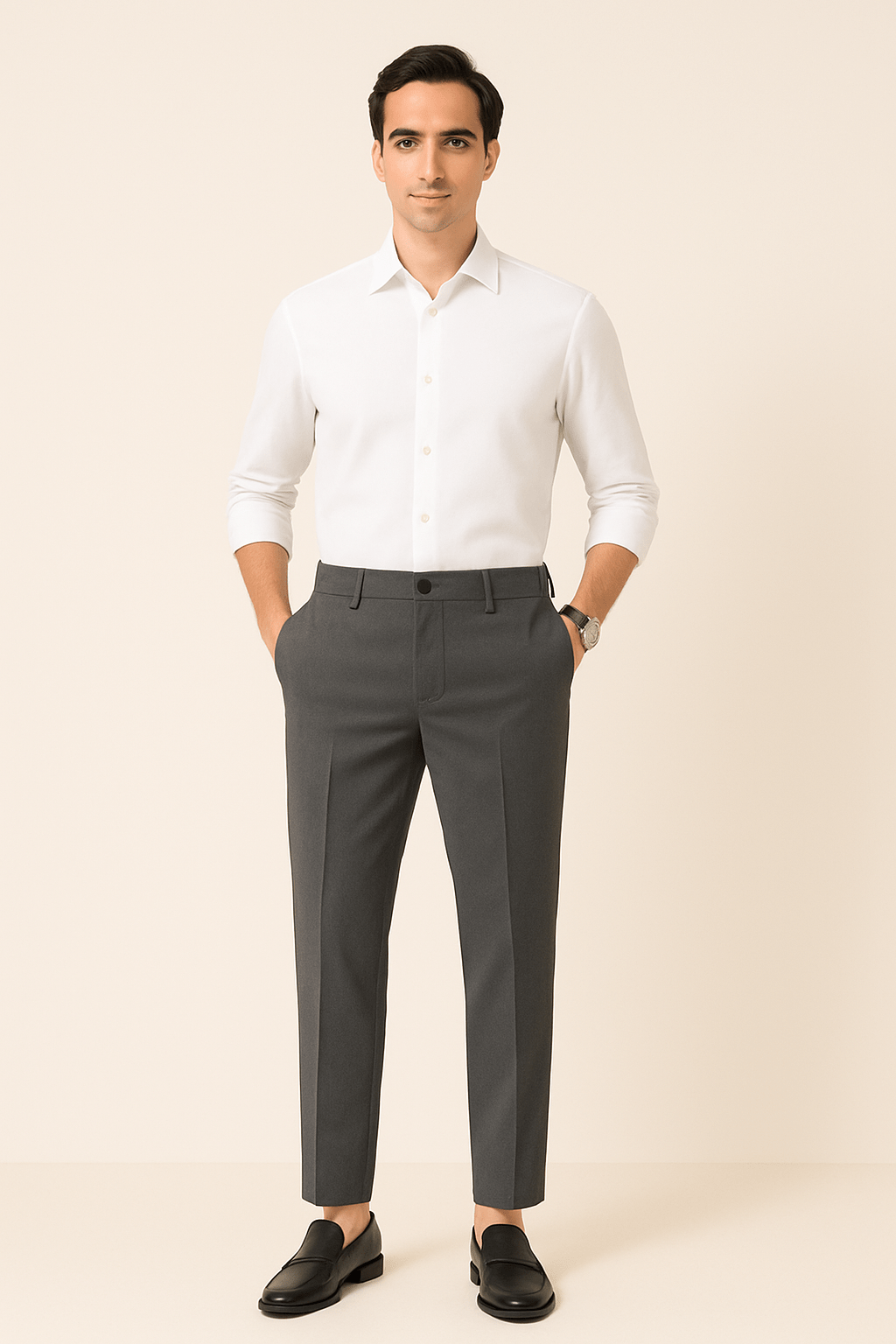 Jordan Men’s Slim Fit Suit Trousers with Pleat – Classic Business Style Gray